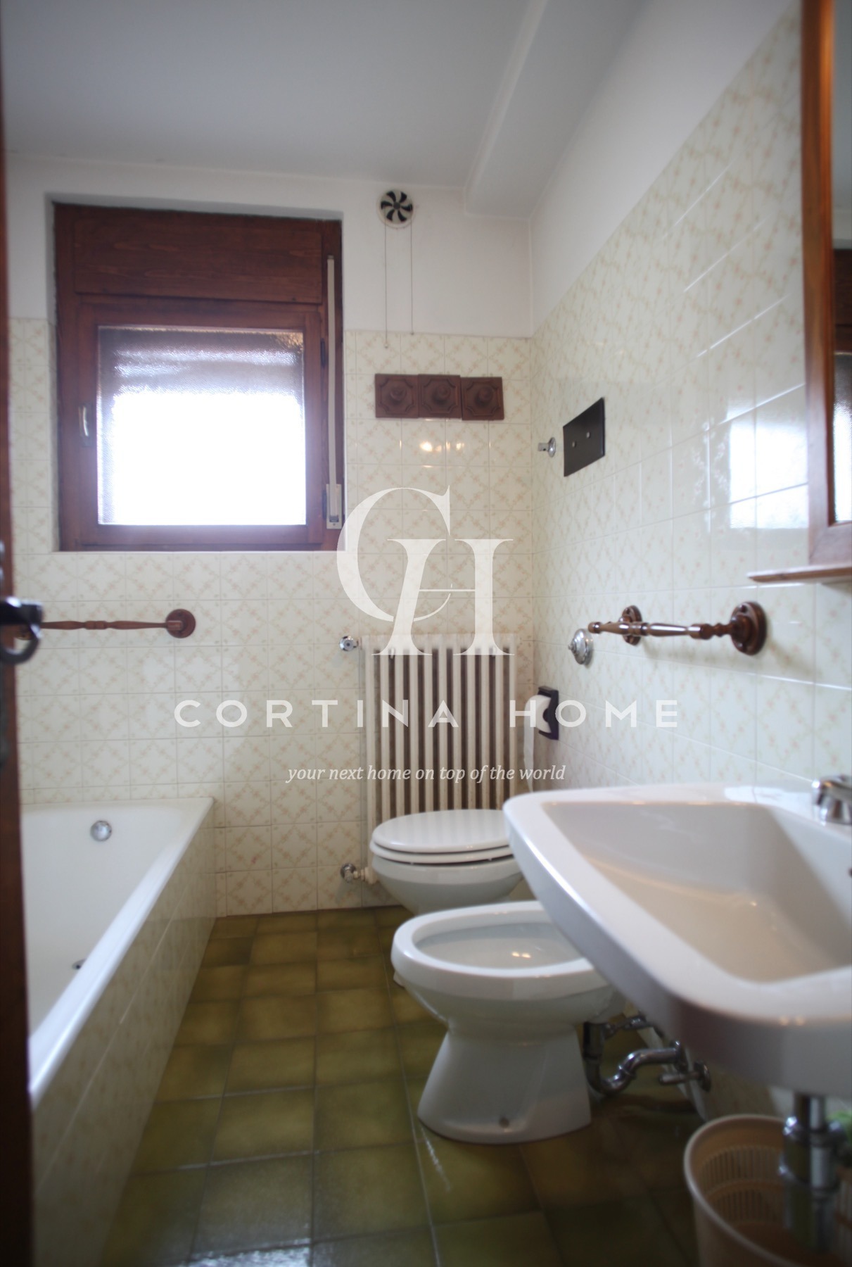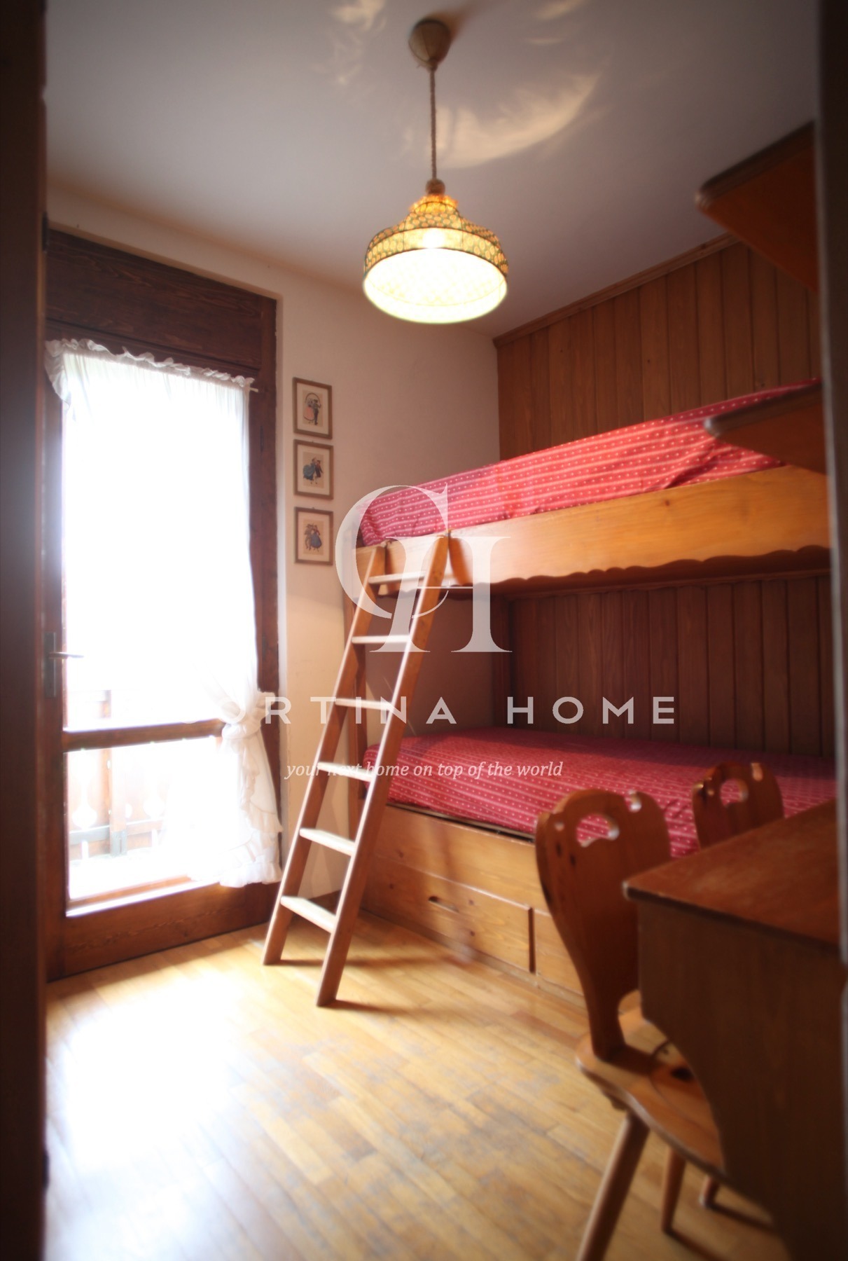 Ca’ Giovanna features a spacious entrance hall, a living room with dining area and fireplace, a kitchenette, one double bedroom (with beds that can be separated if needed), one single bedroom, one bedroom with bunk beds, and two bathrooms with bathtubs.