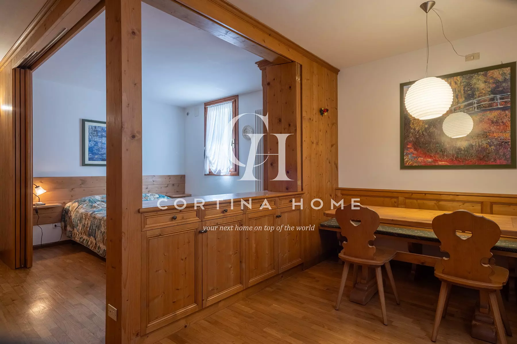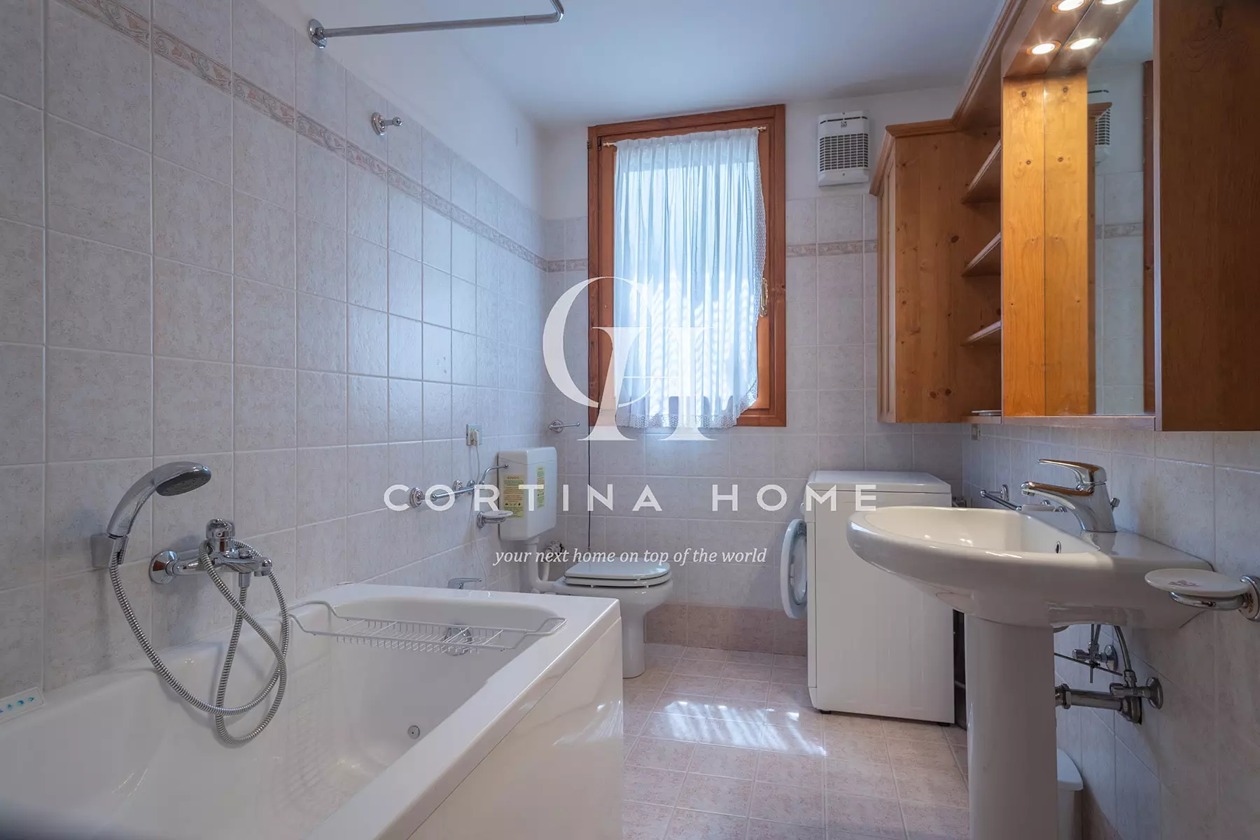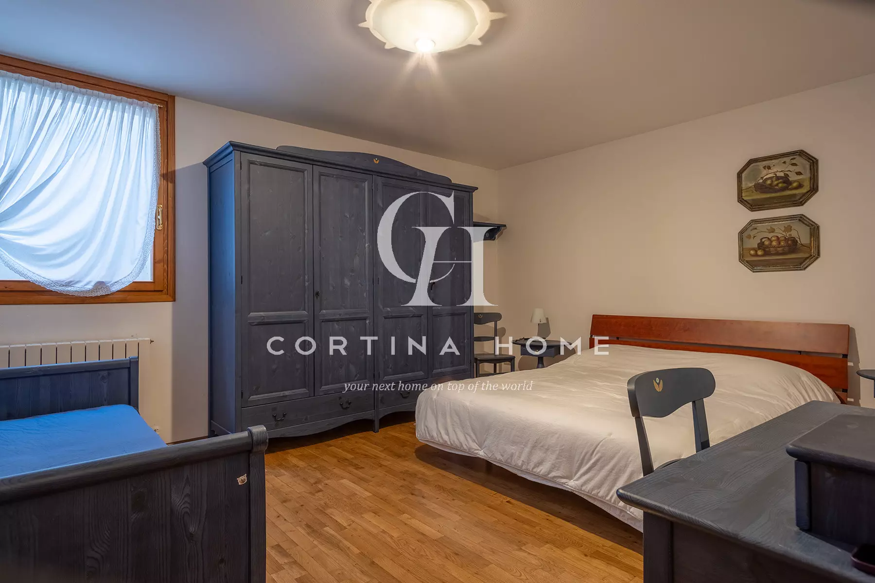 Accogliente appartamento su due livelli, situato al piano terra di un piccolo condominio nella centralissima via San Marco. L’ingresso si apre su un luminoso soggiorno con zona pranzo, impreziosito da una tradizionale stufa a legna. Il piano terra comprende anche una cucina a vista, un bagno, una camera matrimoniale e una con letto a castello. Nel luminoso piano sottostrada si trovano una seconda zona giorno, due camere matrimoniali e un altro bagno, offrendo ampi spazi per la famiglia o per ospiti. Completano la proprietà un comodo posto auto in garage e una cantina. Ideale come prima casa o casa vacanze, in posizione comoda e ben servita.