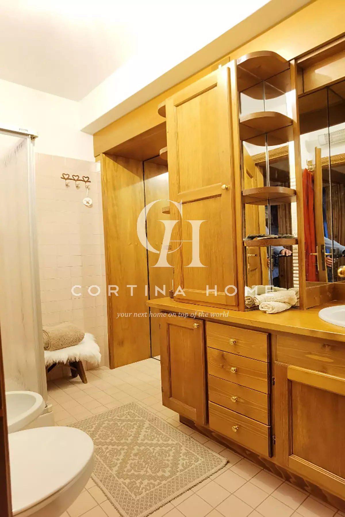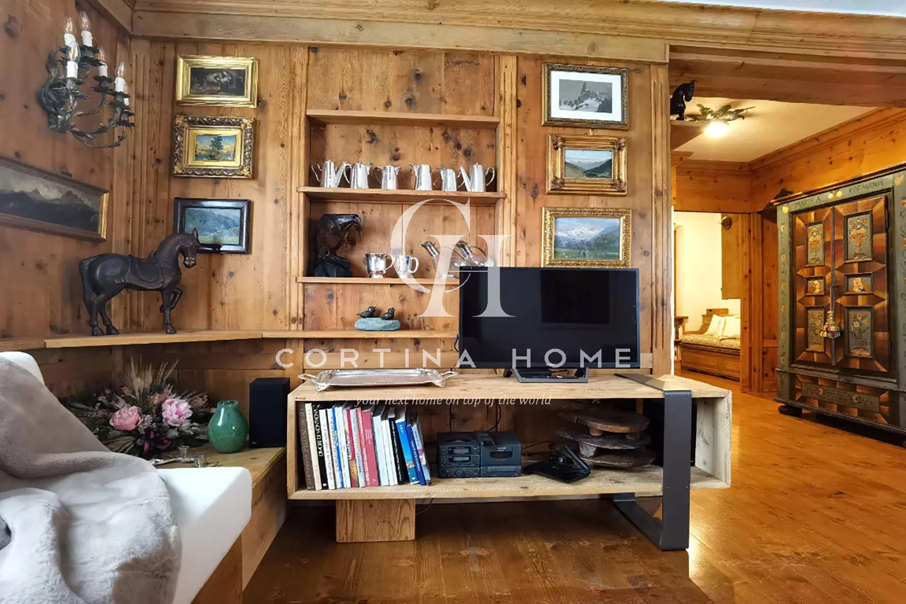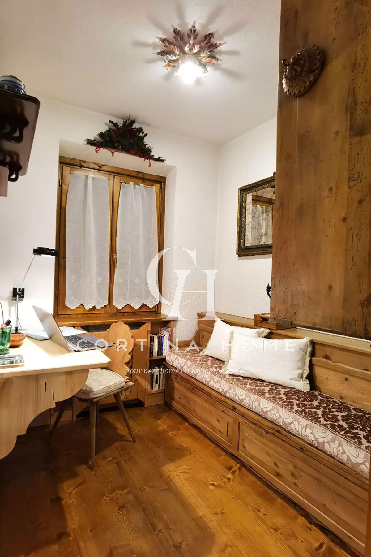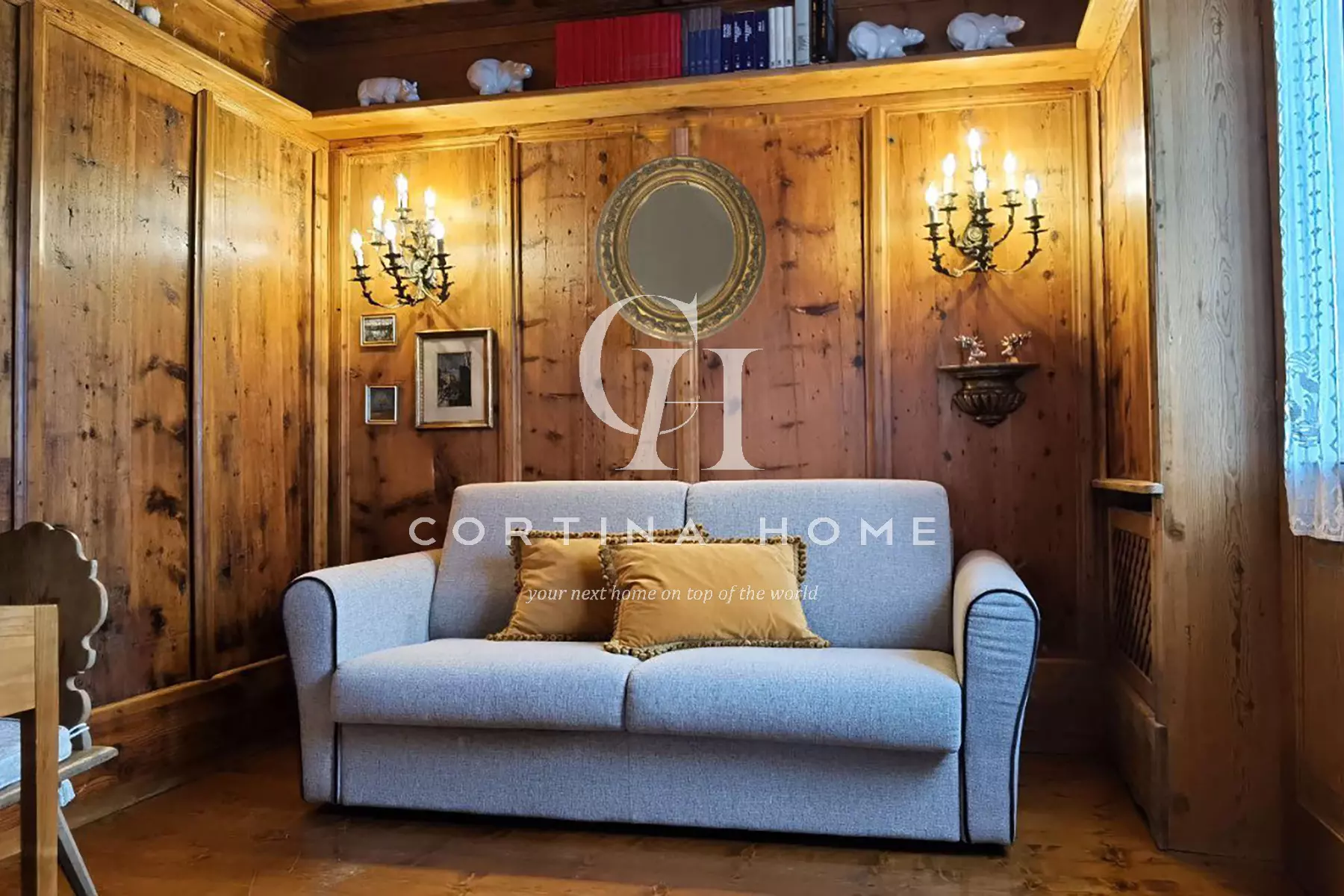 Ca’ Zanna è un appartamento al piano terra in posizione molto tranquilla e comoda, che si compone di ampio soggiorno con poggiolo vista Tofane, cucinotto, camera matrimoniale con bagno in camera con vasca da bagno, studio con divanetto, altro bagno con doccia comunicante con altra stanza doppia-matrimoniale su divano letto, quest’ultima camera è adiacente al soggiorno ed è divisa da una porta scorrevole. A completare vi è wi-fi, cantina e 1 posto auto esterno.