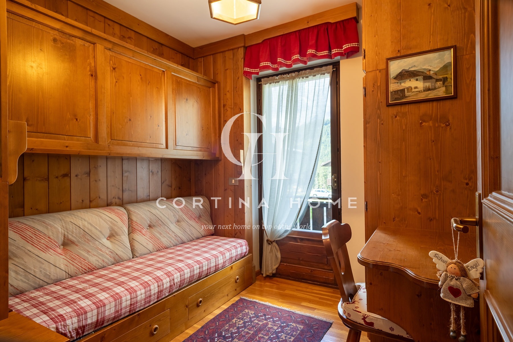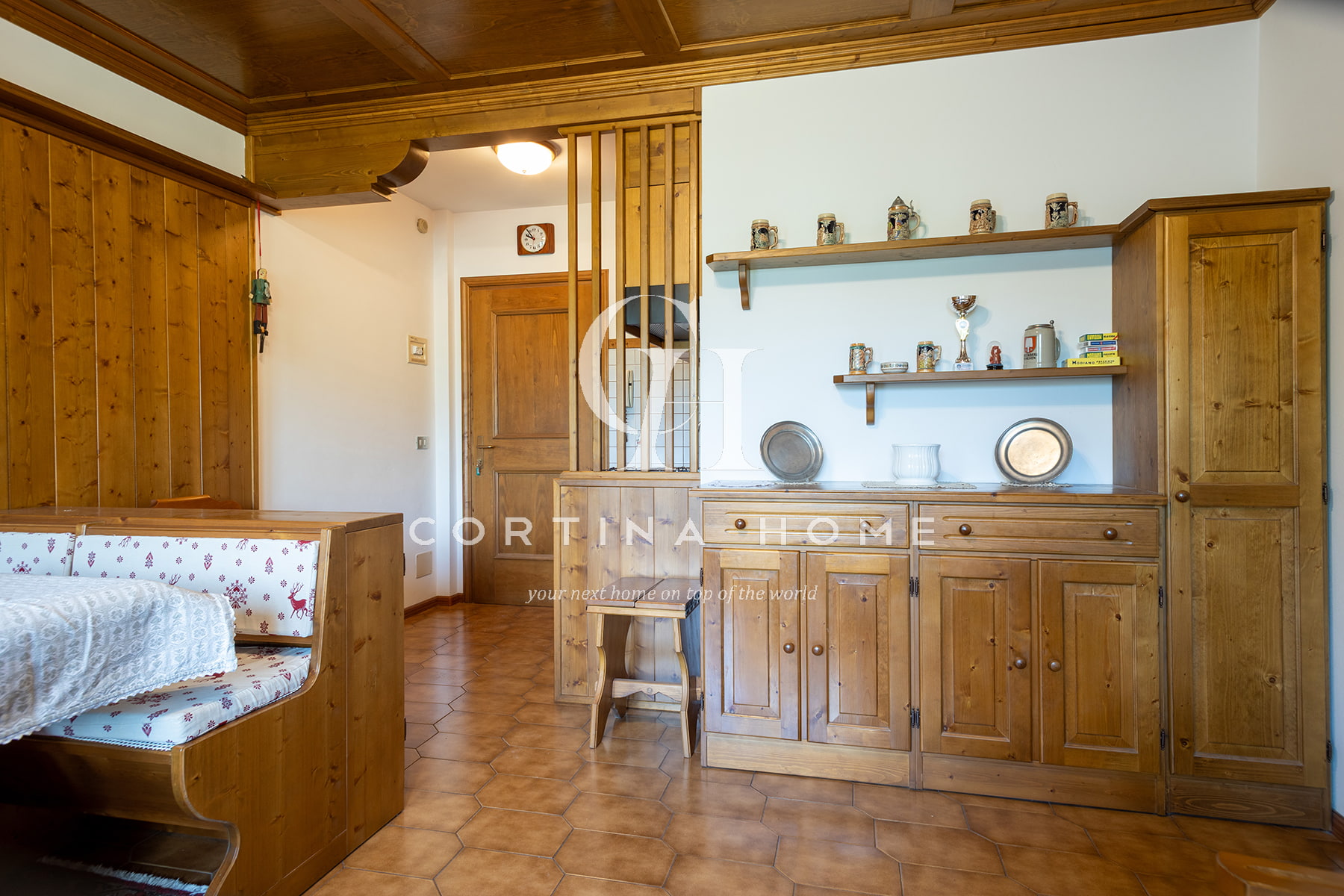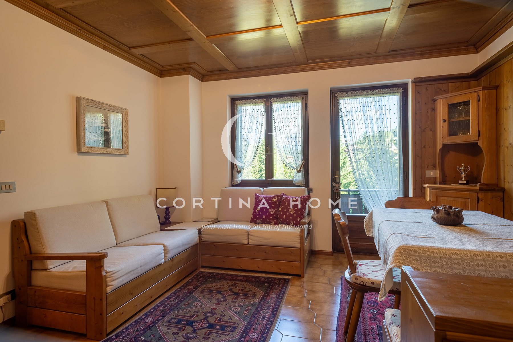 Accogliente appartamento situato al primo piano, nella tranquilla località di Chiapuzza a San Vito di Cadore. L’abitazione dispone di un luminoso soggiorno con zona pranzo, una cucina completamente attrezzata, una camera matrimoniale, una camera singola e un bagno con doccia. Un bel balcone con vista sulle Dolomiti e un posto auto esterno completano la proprietà.