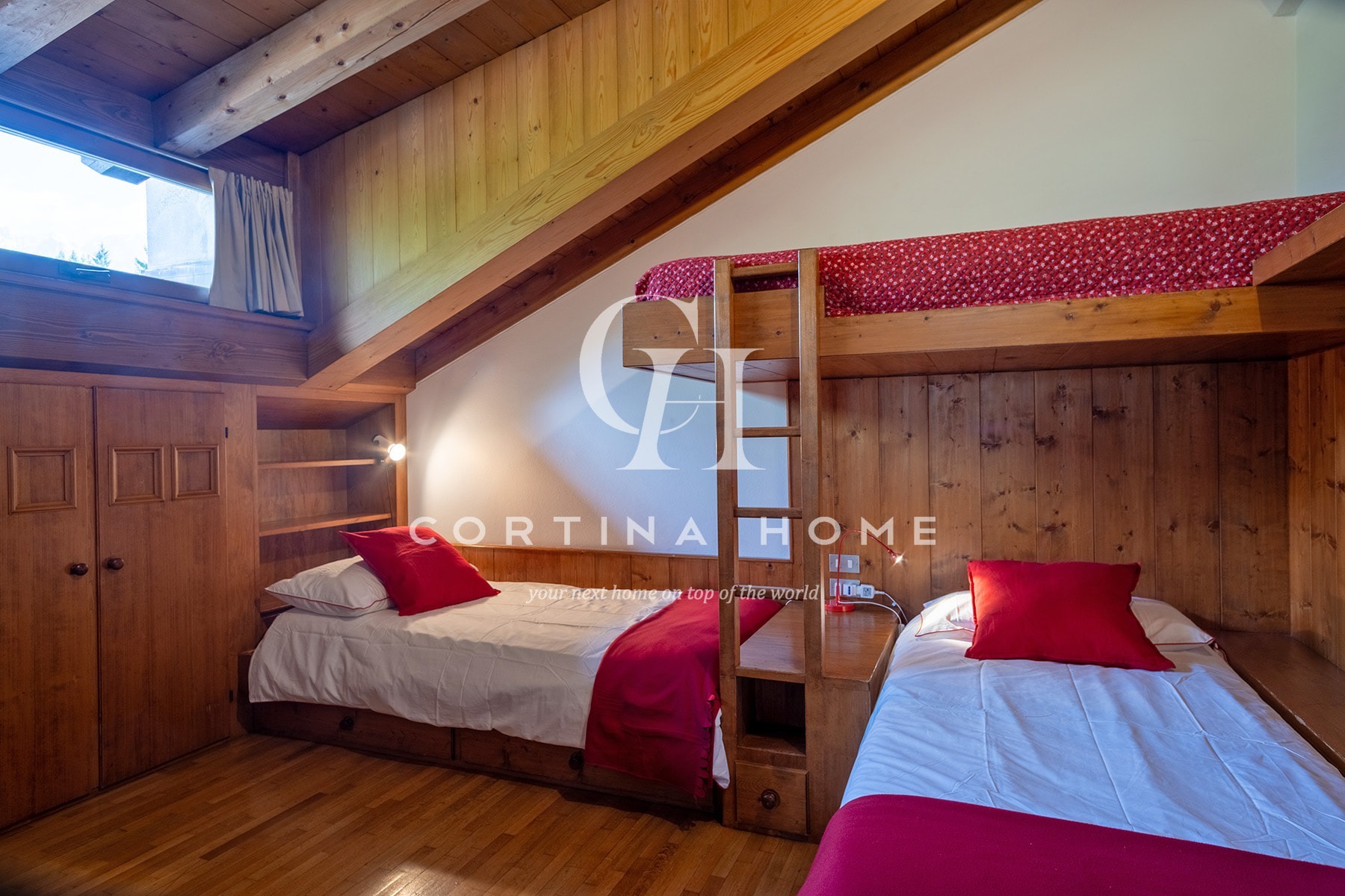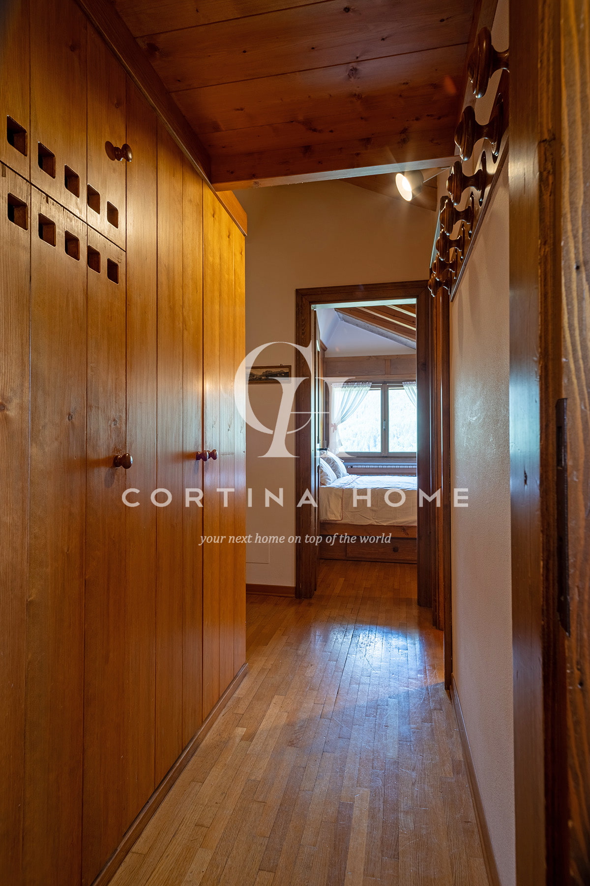 In località Peziè, zona tranquilla, panoramica e immersa nella natura. L’immobile si trova al secondo piano e si affaccia direttamente sulla bellissima ciclopedonale, regalando una vista rilassante e tanta luce naturale. L’appartamento è composto da un ampio soggiorno con zona pranzo e angolo cottura. La prima zona notte include una camera doppia e un bagno con doccia, mentre nella seconda zona notte si trovano una camera matrimoniale, una camera tripla e un secondo bagno, questa volta con vasca. Completano la proprietà un posto auto esterno condominiale e un posto auto assegnato in garage. Una soluzione perfetta per chi cerca tranquillità, spazio e la vicinanza al centro di Cortina, senza rinunciare alla bellezza del paesaggio ampezzano.