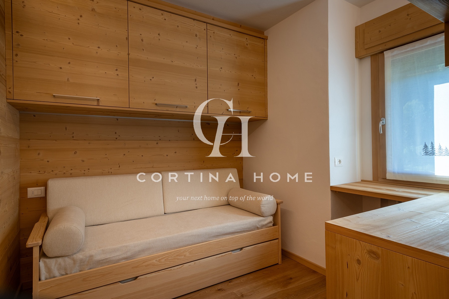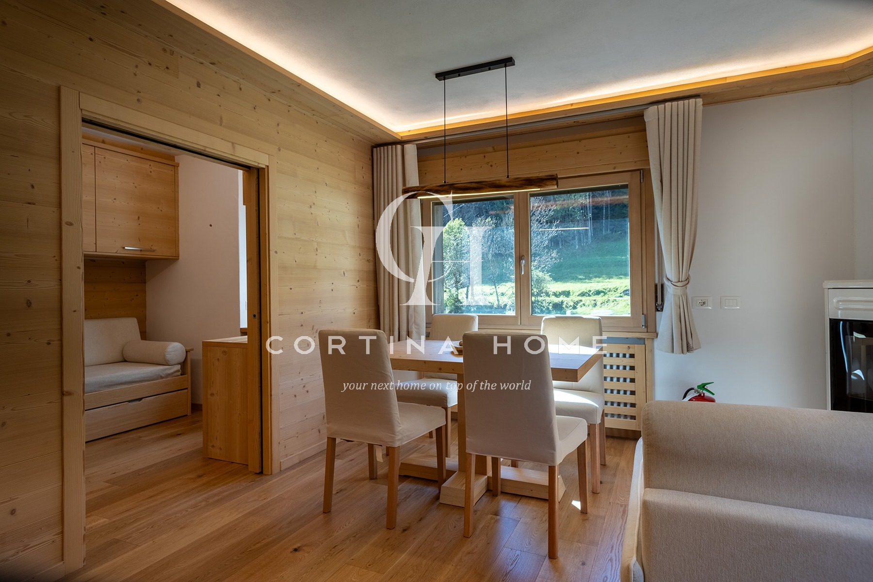 Splendido appartamento recentemente ristrutturato, situato al piano terra rialzato di una piccola palazzina nella tranquilla località di Serdes, a San Vito di Cadore. L’ingresso si apre su un luminoso soggiorno con zona pranzo e cucina a vista, ideale per trascorrere piacevoli momenti in famiglia o con amici. La zona notte comprende una camera matrimoniale e una seconda stanza con divano letto. Completa la proprietà un moderno bagno con doccia. L’appartamento dispone inoltre di un posto auto esterno e di un pratico garage coperto.