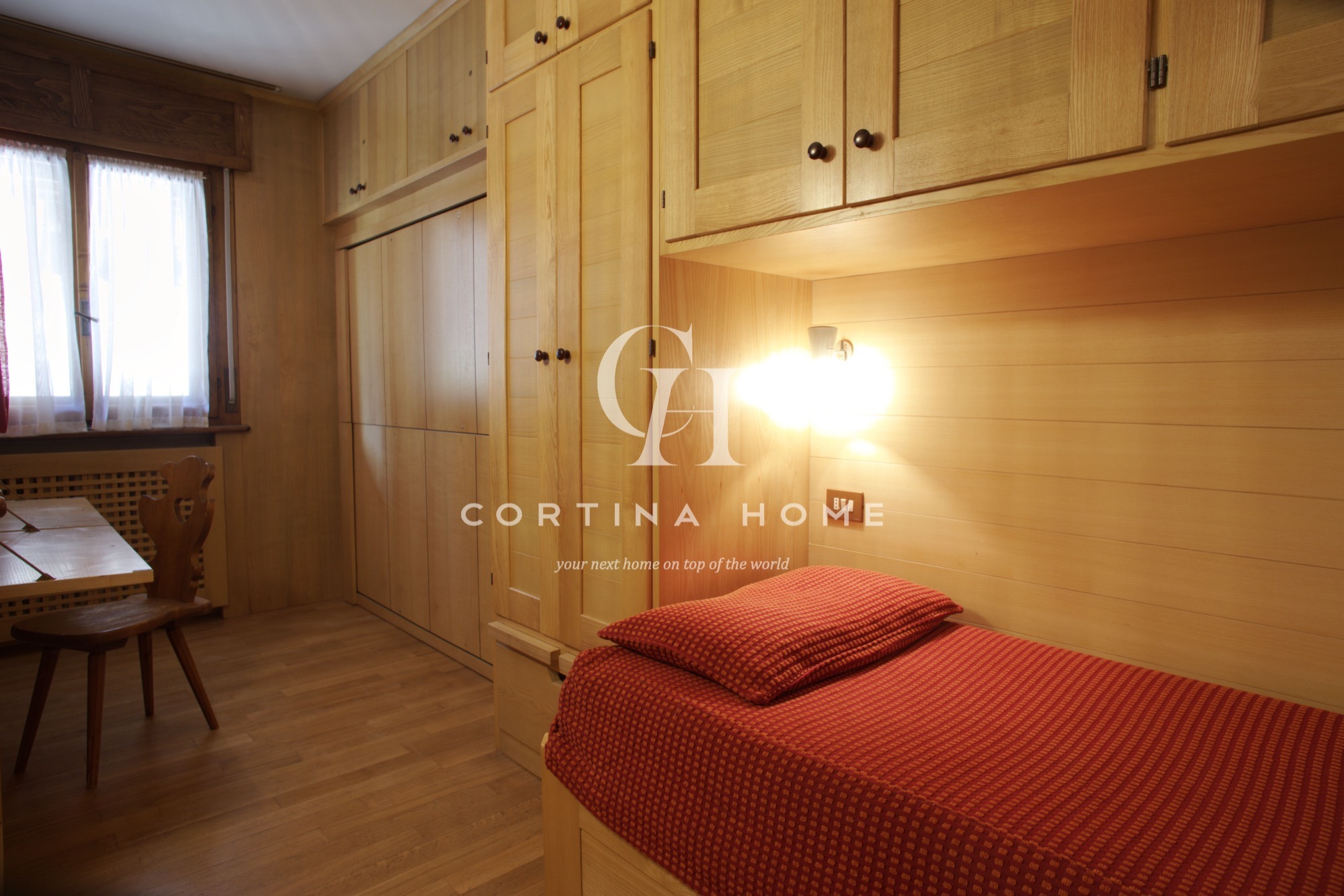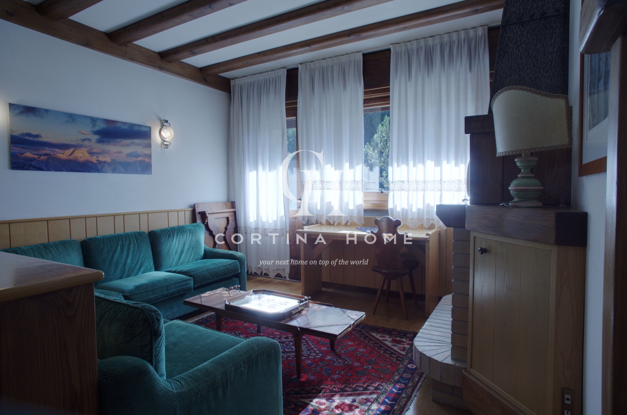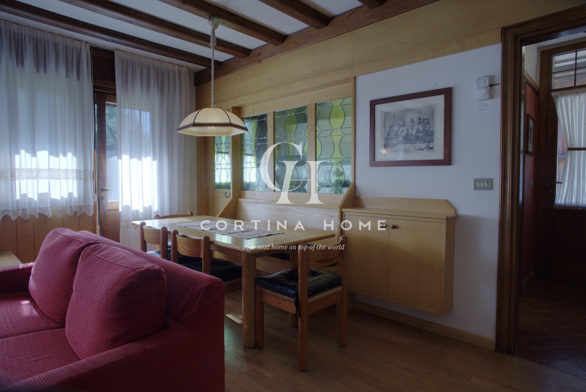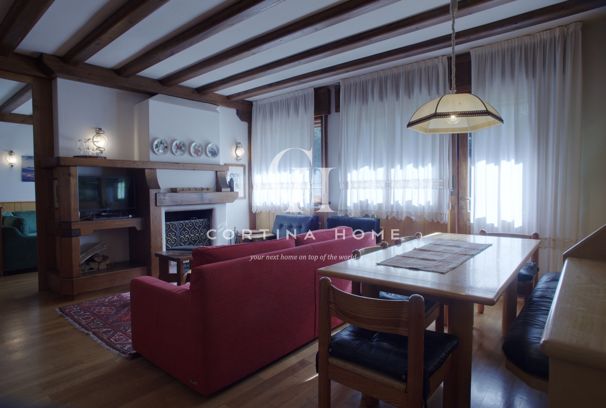 Comodo appartamento a piano terra con bella esposizione a est e sud, vista sul Becco di Mezzodì e la Croda da Lago. Dista circa dieci minuti a piedi dal centro cittadino e si trova lungo la strada che porta agli impianti di Cristallo e Faloria.Si compone di ingresso, cucina ben attrezzata, grande soggiorno con angolo pranzo e caminetto, diviso in due distinte zone divani.Vi sono due zone notte, la prima composta da una camera matrimoniale, un bagno con doccia, una camera con un letto singolo e possibilità di avere altri due letti singoli a ribalta, un bagno con vasca. La seconda zona notte è composta da una singola, un bagno con doccia, una matrimoniale con bagno en suite con vasca. Completa la proprietà una stanza ad uso lavanderia.La casa dispone di un bel patio esterno dove poter prendere un aperitivo o rilassarsi circondati dal verde ed ha lo comodità di avere assegnati due posti auto in garage coperto.