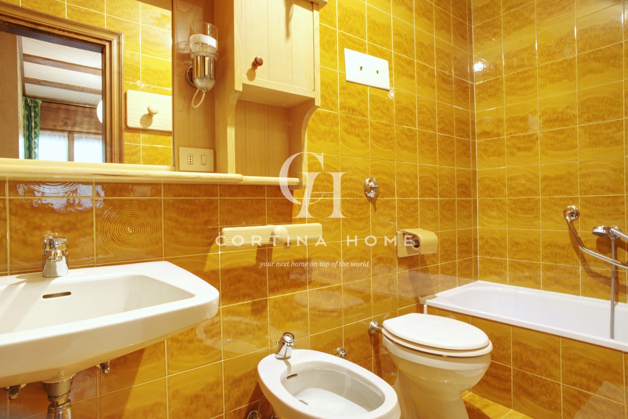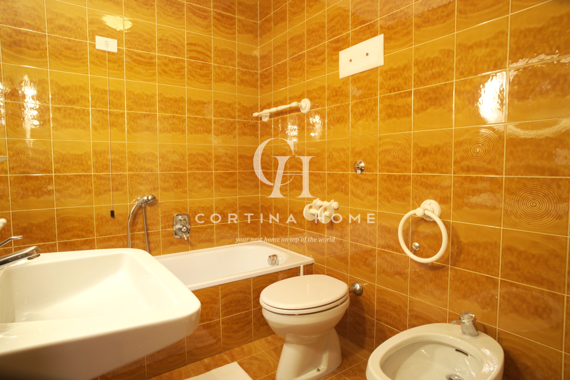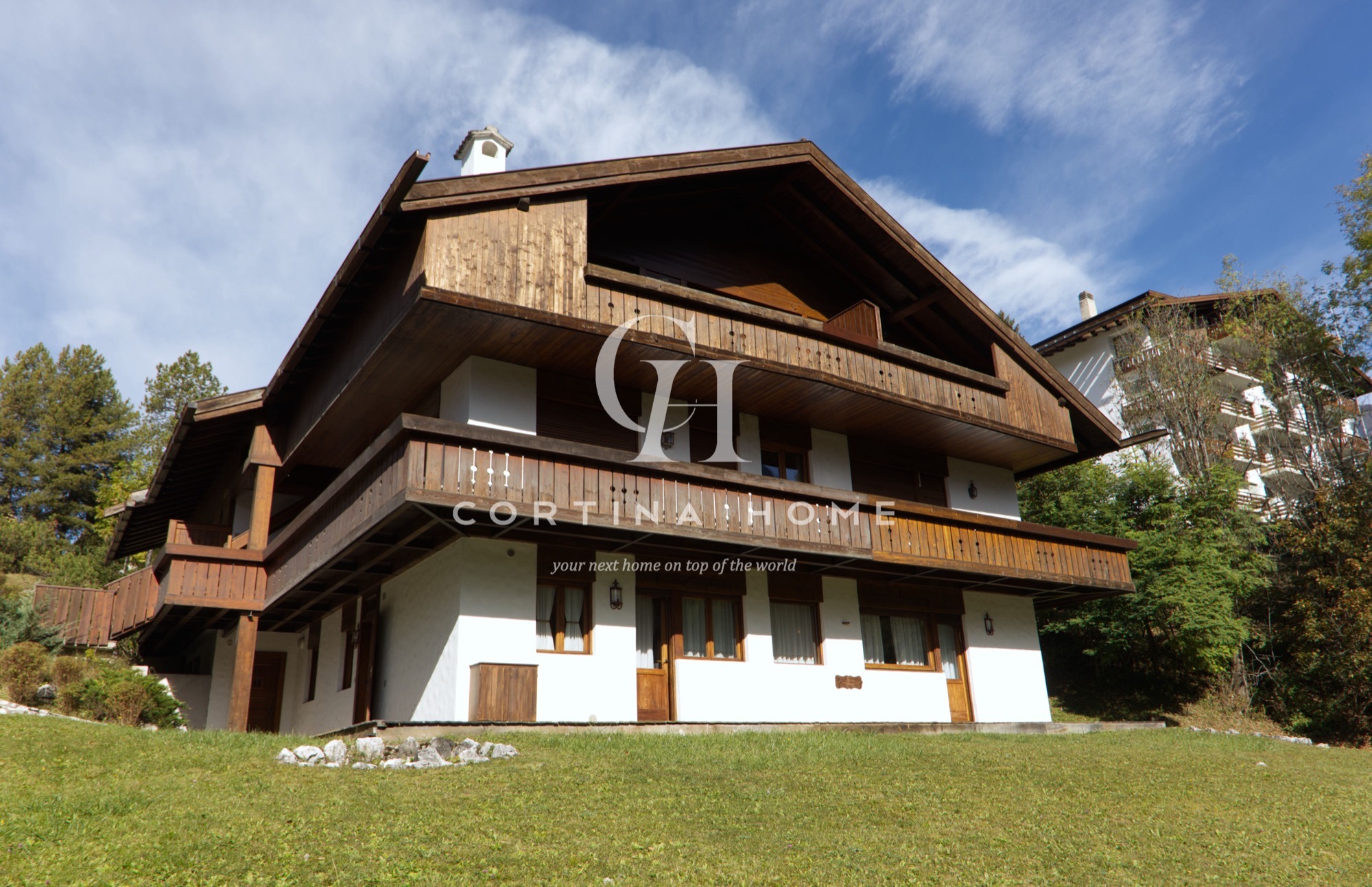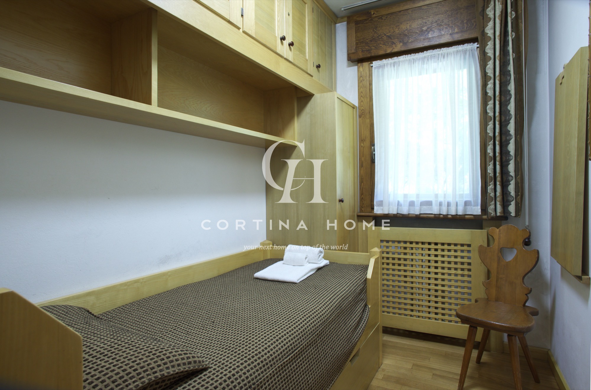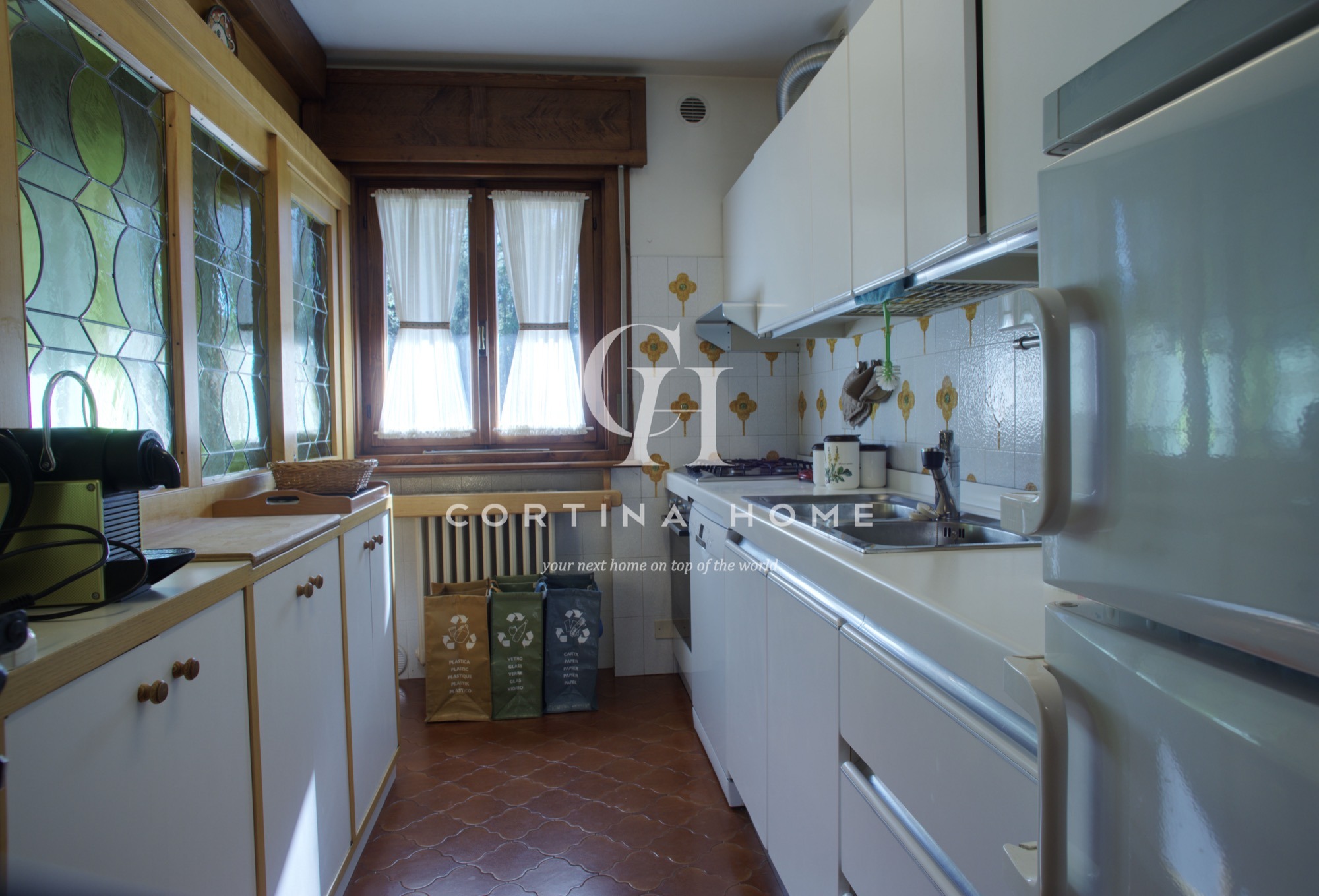 Comodo appartamento a piano terra con bella esposizione a est e sud, vista sul Becco di Mezzodì e la Croda da Lago. Dista circa dieci minuti a piedi dal centro cittadino e si trova lungo la strada che porta agli impianti di Cristallo e Faloria.Si compone di ingresso, cucina ben attrezzata, grande soggiorno con angolo pranzo e caminetto, diviso in due distinte zone divani.Vi sono due zone notte, la prima composta da una camera matrimoniale, un bagno con doccia, una camera con un letto singolo e possibilità di avere altri due letti singoli a ribalta, un bagno con vasca. La seconda zona notte è composta da una singola, un bagno con doccia, una matrimoniale con bagno en suite con vasca. Completa la proprietà una stanza ad uso lavanderia.La casa dispone di un bel patio esterno dove poter prendere un aperitivo o rilassarsi circondati dal verde ed ha lo comodità di avere assegnati due posti auto in garage coperto.