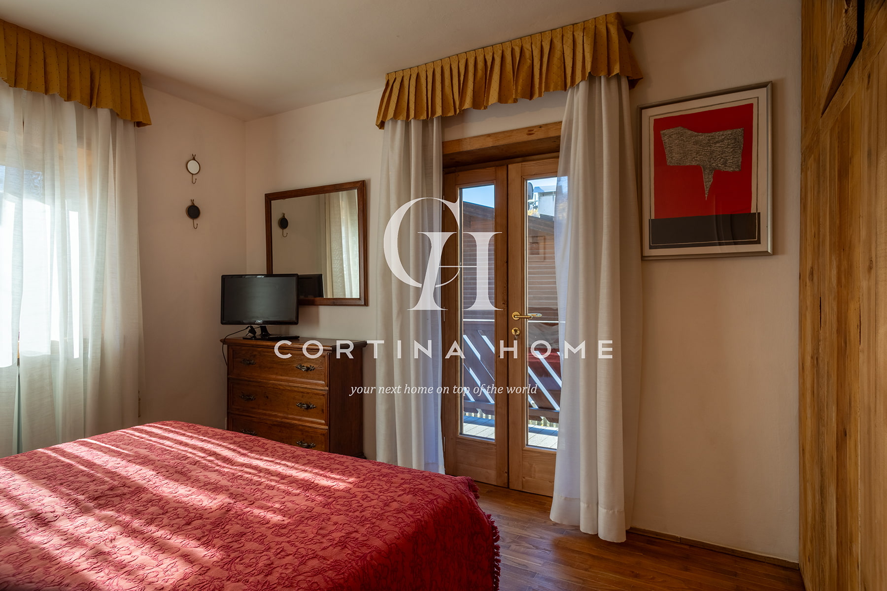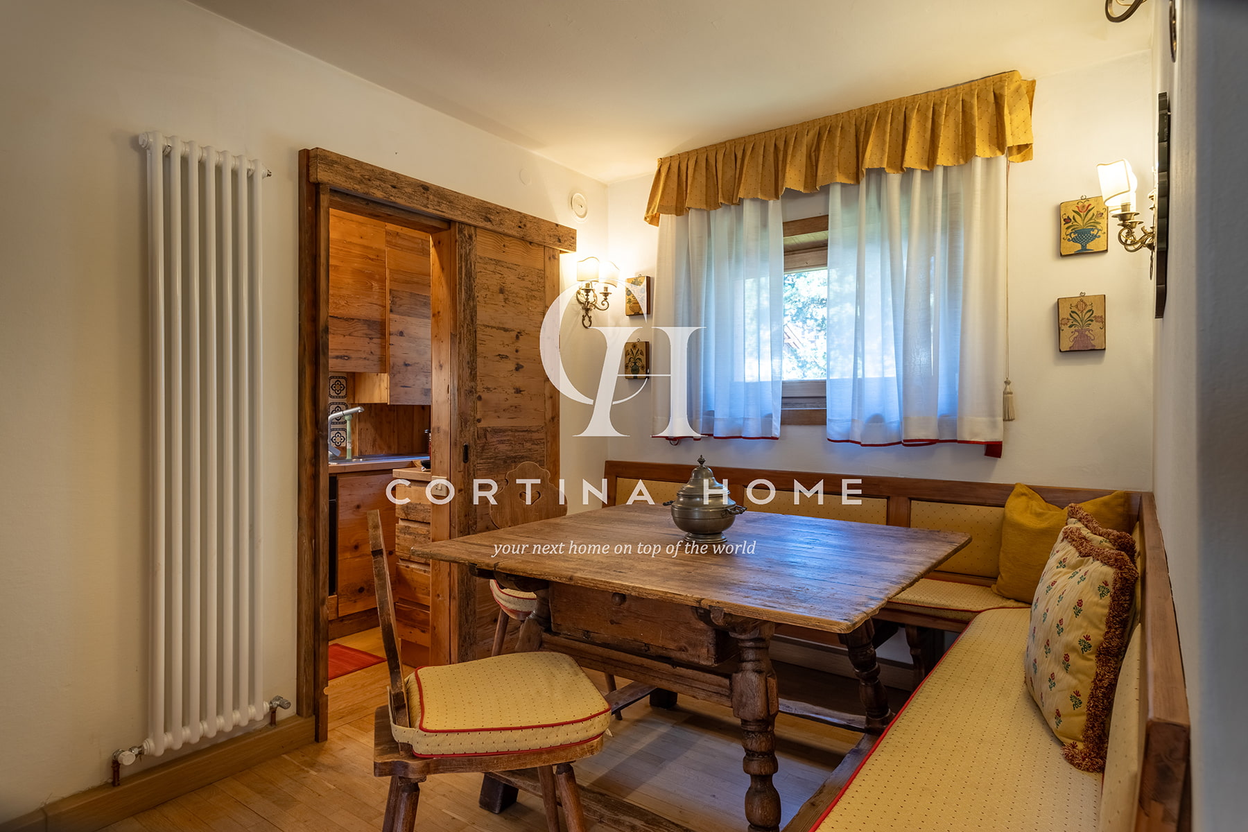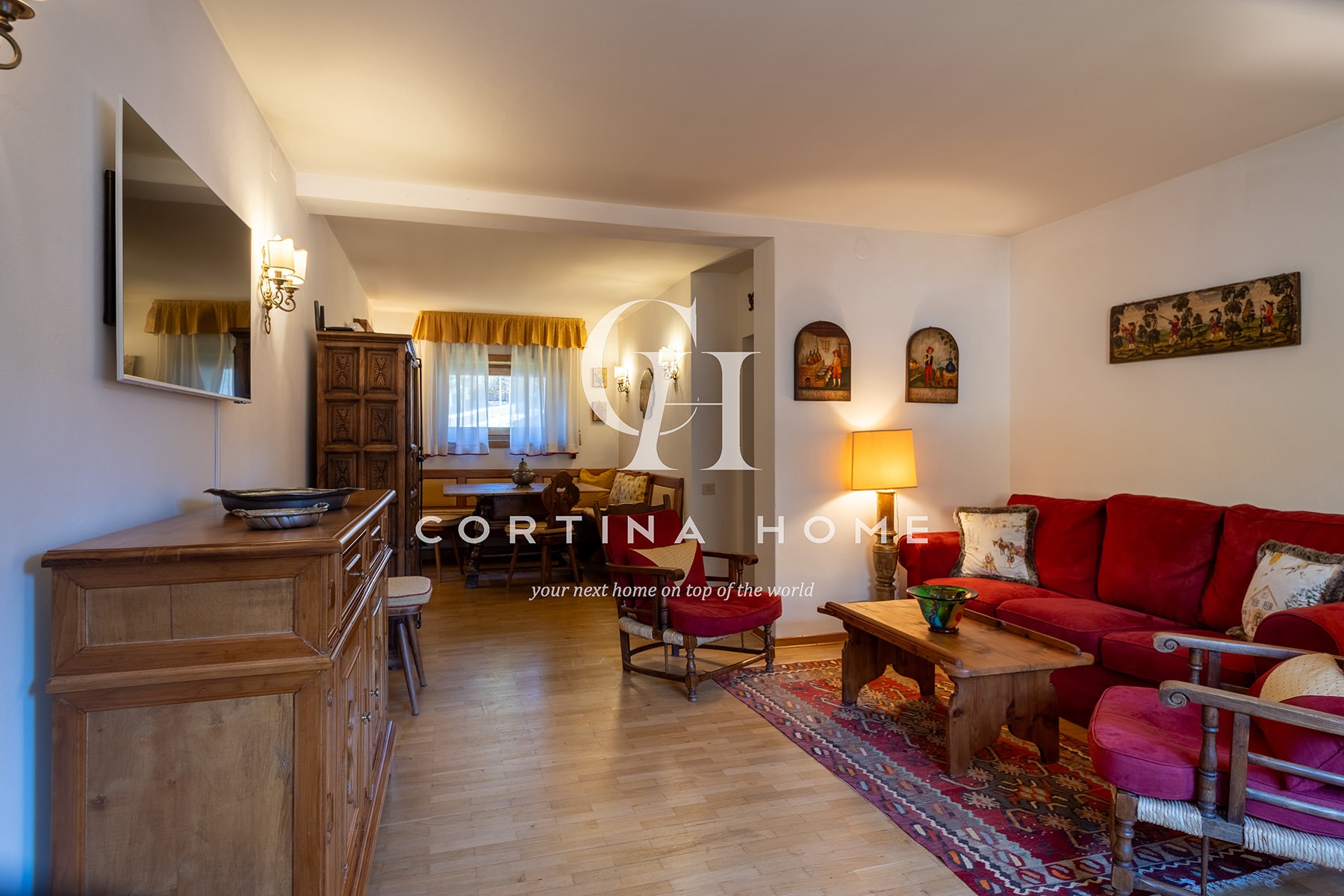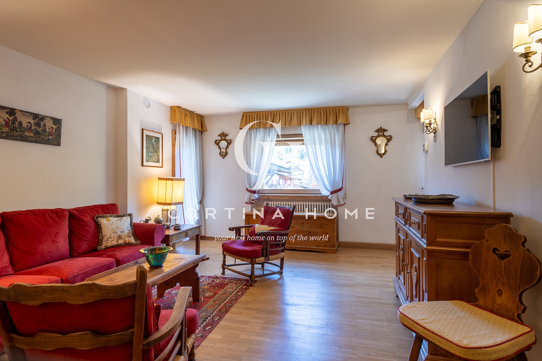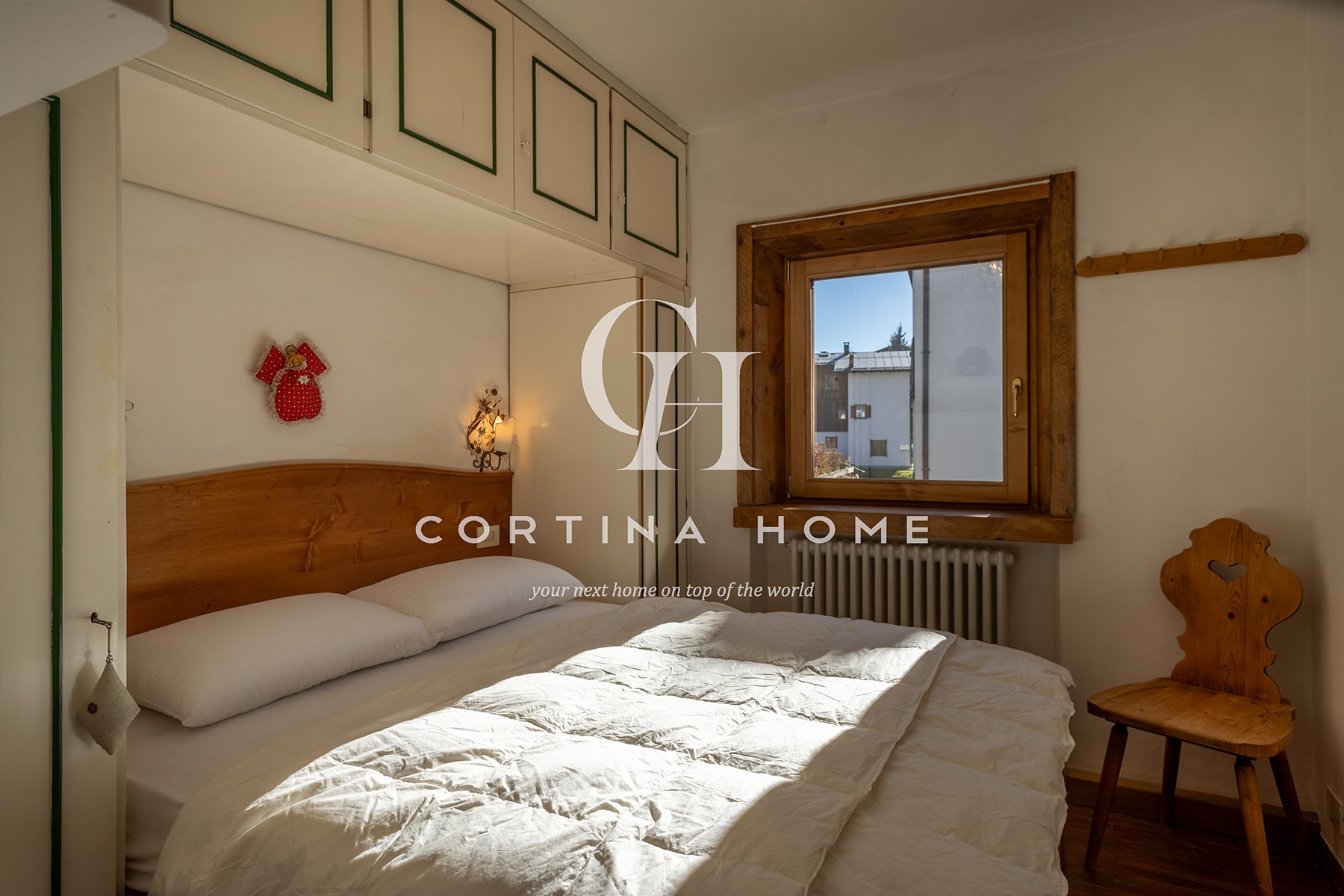 Appartamento situato al primo piano di un piccolo condominio in posizione centrale, adiacente allo Stadio Olimpico del Ghiaccio. La posizione è ideale per chi desidera soggiornare vicino al centro e a tutti i principali servizi, nonché a pochi passi dalla partenza della funivia Freccia nel Cielo – Tofana. L’abitazione si compone di un soggiorno accogliente con accesso a un balcone soleggiato con splendida vista sulle Tofane, zona pranzo, cucinino separato, una camera matrimoniale, una seconda camera matrimoniale con possibilità di separare i letti secondo necessità, e un bagno con vasca/doccia. Completa la proprietà un posto auto esterno.
